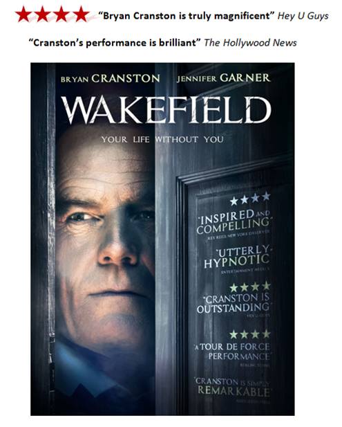 A fraught meditation on marriage and identity, WAKEFIELD features a tour de force performance from a never better Cranston in a film that won wide praise following its debut last year at the Toronto International Film Festival. Based on a short story from the legendary American novelist E.L Doctorow and brought to the screen by acclaimed writer/director Robin Swicord (The Jane Austen Book Club, Memoirs Of A Geisha), WAKEFIELD features supporting performances from Jennifer Garner (Dallas Buyer’s Club, Juno), Beverley D’Angelo (Entourage, Cougar Town)and Jason O’Mara (The Good Wife, Marvel’s Agents Of SHIELD), but make no mistake – this is Cranston’s film, featuring a truly towering performance from one of the most important actors working in film today.
