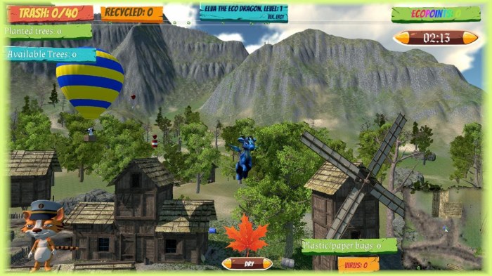 Help Elva, a little dragon, who protects our planet from pollution and waste.