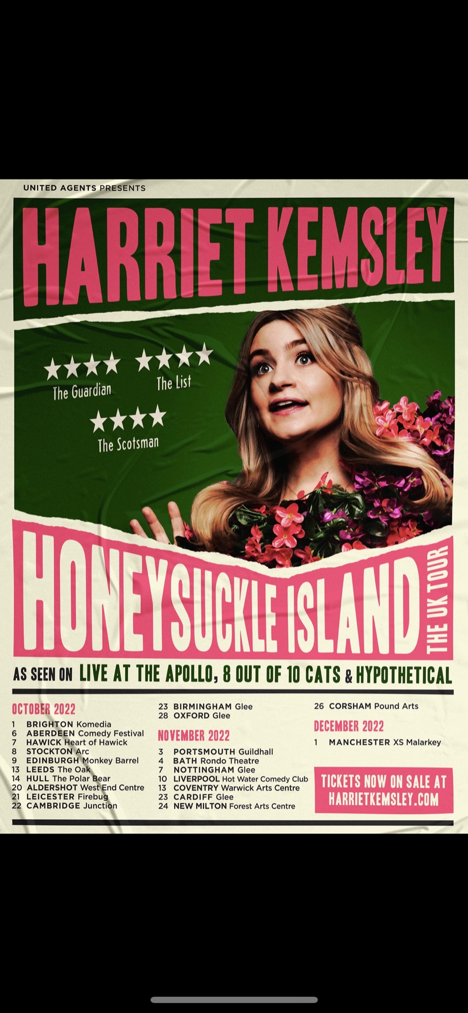 Fresh from a sell out run at the Edinburgh Festival Fringe, Harriet Kemsley is bringing her new critically acclaimed show ‘Honeysuckle Island’ to the Soho Theatre and then touring nationally this autumn.
