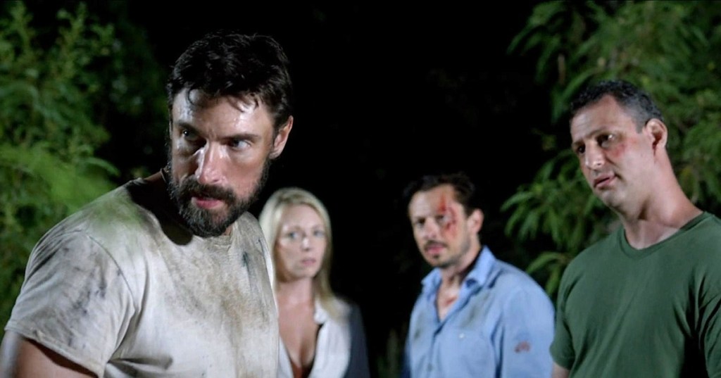 From Director Adam Werth ( Ranchers Kin, and the upcoming Alien Storm) and from a story by Michael Mahal and Sonny Mahal, with the screenplay by Robert Thompson comes Bermuda Island, a fun bonkers tale of a group of flight passengers whose flight to Puerto Rico runs into a mid air storm and crashes next to ‘Bermuda Island’ Once on shore, the great mix of characters must fight to get along, fight to survive and fight to avoid..the something on the island. Part air disaster film, part ‘Lost’ and part creature feature. Bermuda Island is a fun popcorn film that will keep you very entertained for its runtime. Whilst the ‘hook’ of the film might be the ‘something’ that’s on the island, for me the key for this film other than the beautiful scenery is the great set of characters that are on screen. There is something to like and dislike for everyone! There are also so many faces that I recognised in the film too such as Sarah French (Bridge of the Damned, which I watched recently). Its also a bit of a reunion from the Michael Su directed film Night of the Tommyknockers as Bermuda Island features Sheri Davis, Victor V Gelsomino,Wesley Cannon, Dane Bingenheimer, Bill Victor Arucan and Tom Sizemore who featured in that monster western (which I did review here )