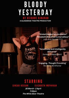 Ireland’s most renowned female playwright; Deirdre KInahan has work performed internationally and translated into many languages. Her new play, Bloody Yesterday is playing London next week ahead of it’s tour. Inspired by a true story, it delicately depicts the broken relationship between a Mother and Daughter : Exploring loss, estrangement, identity, resilience and motherhood. Haunted by a ‘nineties’ soundtrack Bloody Yesterday also charts the extraordinary influence of music on memory coupled with the unshakeable bond of family, love, and blood. Lastly and most pertinently, Bloody Yesterday explores the vilification of women who leave the home and children behind.