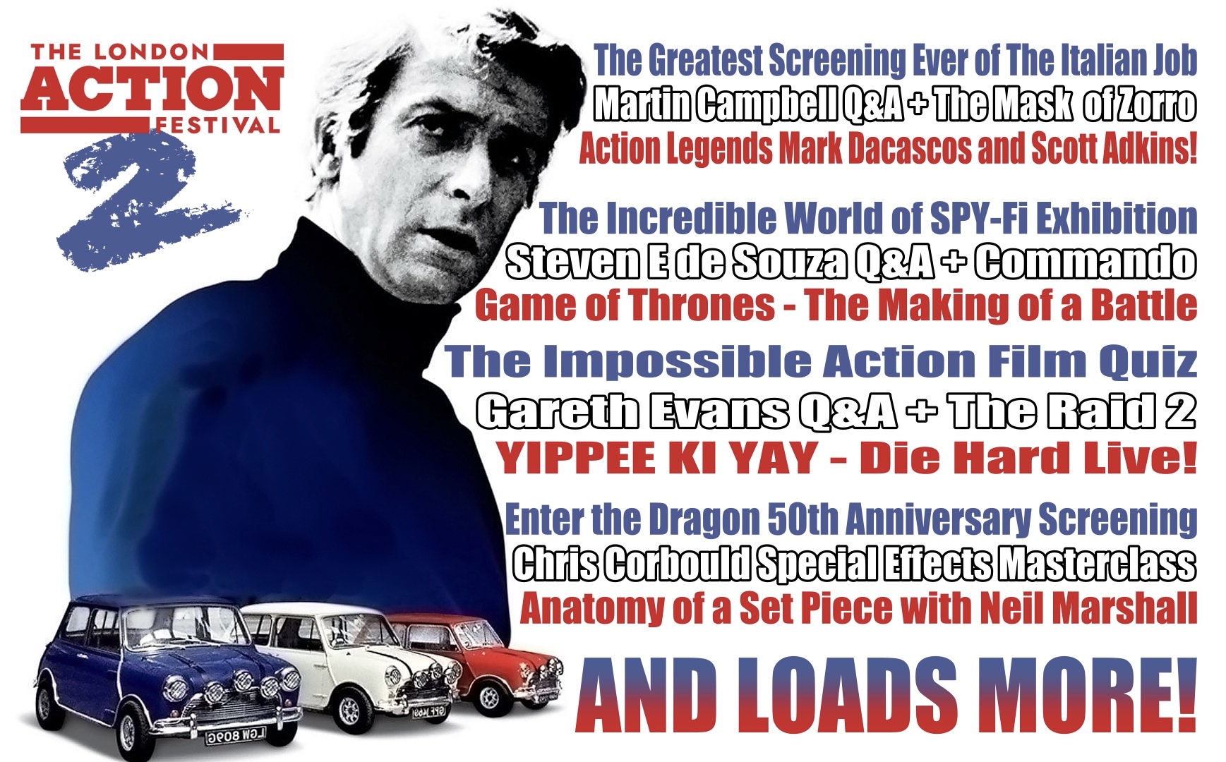 The WORLD’S GREATEST EVER SCREENING…(PROBABLY!) of the great British Classic THE ITALIAN JOB following in the footsteps of last year’s history making DIE HARD screening, with special guests, music and surprises.