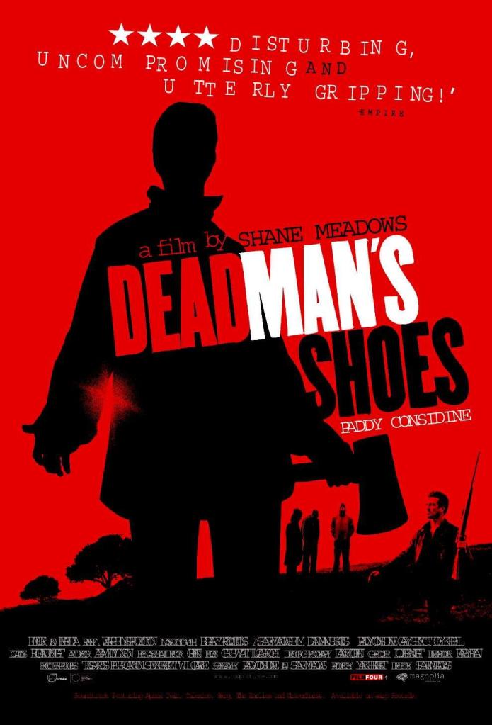 Richard (Paddy Considine) has always protected his little brother Anthony (Toby Kebbell). Richard is strong and fair, while the loving and gentle Anthony is simple minded. When Richard leaves the rural village where they have grown up, to join the army, Anthony is taken in by Sonny (Gary Stretch), a controlling and vicious local drug dealer, and his gang of lads. Anthony becomes the gang’s pet and plaything, as they initiate him into their sordid worldly ways. Seven years later Richard returns for revenge on those who tormented his Brother. To say Dead Mans Shoes is a great film is an understatement. Its a classic and one of those films that when you hear someone say ‘oh ive not seen that film’ your instant reply usually is ‘oh you HAVE to watch it’. I havent seen it on the big screen but have owned the DVD since its release and have watched it many times over the years. So if you havent seen Dead Mans Shoes, then you HAVE to watch it.