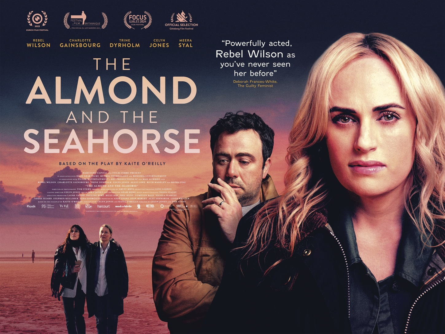 Based on the play of the same name, the film, which was re-edited for UK audiences, showcases an incredible cast led by Rebel Wilson (Senior Year, Pitch Perfect Trilogy, JoJo Rabbit). The Almond and the Seahorse was co-written by playwright Kaite O’Reilly alongside Celyn Jones who also served as first-time co-director with Tom Stern (cinematographer on Million Dollar Baby, American Sniper).