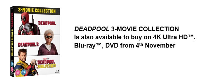 Marvel Studios’ DEADPOOL & WOLVERINE explodes onto 4K Ultra HD , Blu-ray , DVD and limited-edition Steelbooks on 4th November! Starring Ryan Reynolds as Deadpool and Hugh Jackman as Wolverine, the highly anticipated introduction of the edgy, and dynamically comical heroes into the Marvel Cinematic Universe has already proven to be a massive success.