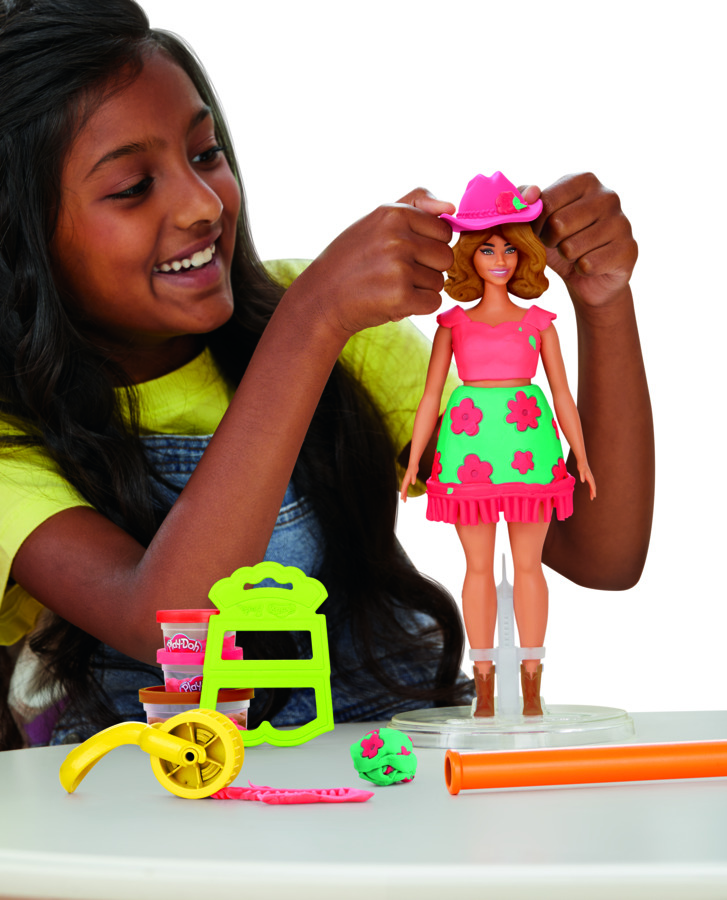 The PLAY-DOH Barbie collection was inspired by massive consumer trends on social media of pairing PLAY-DOH compound with Barbie dolls, sparking the limitless creative possibilities of designing styles through an arts and crafts lens. This licensing collaboration between two iconic brands in their respective toy categories, PLAY-DOH and Barbie, gives consumers a branded experience that unleashes this imaginative potential so kids can dream up and design fun and stylish looks for their Barbie doll with PLAY-DOH compound and tools.