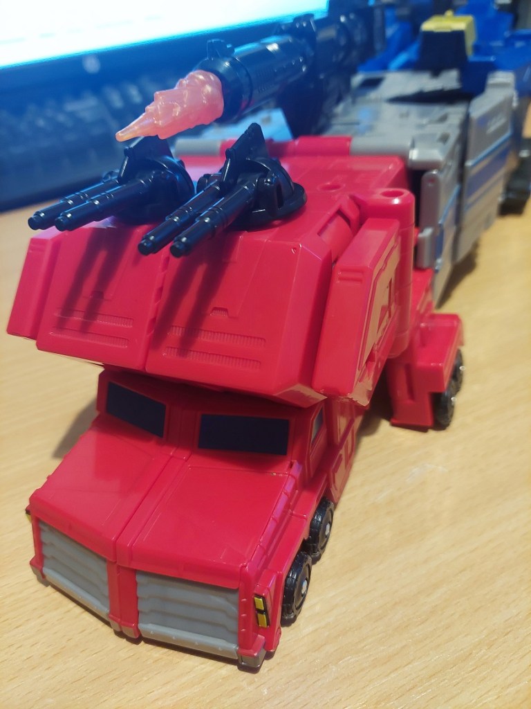 And the result? A fully functional Optimus Prime truck, complete with rolling wheels and weapon storage. It looks great, feels solid, and holds together well once everything clicks into place. The next stage (which I haven’t completed as yet, will be to transform Optimus into the battlestation, and then back into a truck, then into the robot.